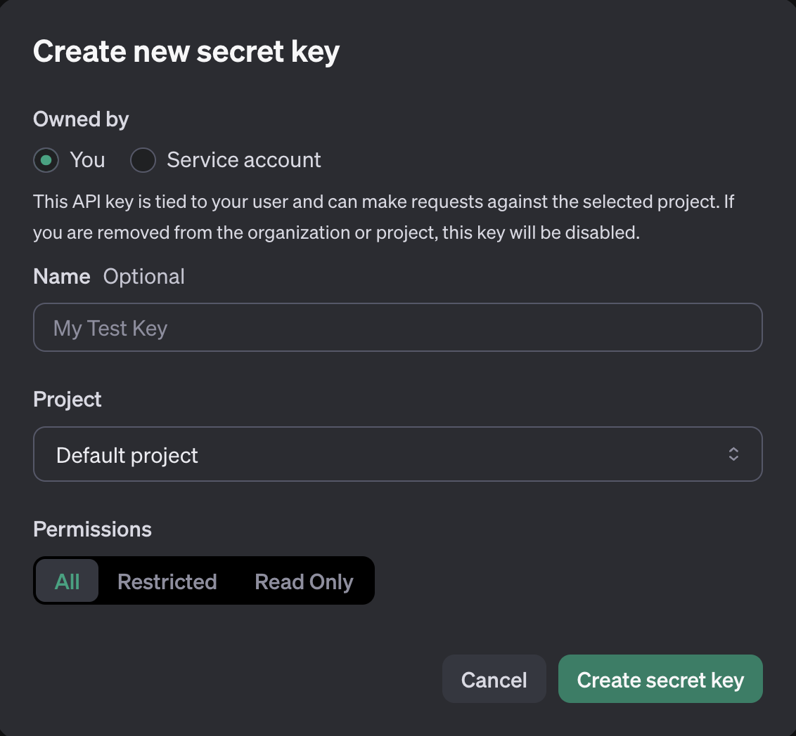 <figure><img src="https://2535542804-files.gitbook.io/~/files/v0/b/gitbook-x-prod.appspot.com/o/spaces%2F-LirAdLo22OkAW9w3tvY%2Fuploads%2FQuuAs7wUEg5CV4biLonO%2FScreenshot%202024-07-10%20at%204.06.05%E2%80%AFPM.png?alt=media&#x26;token=e926851d-71bf-4454-8e77-ca6ef860f5db" alt="" width="375"><figcaption><p>Create new secret key</p></figcaption></figure>