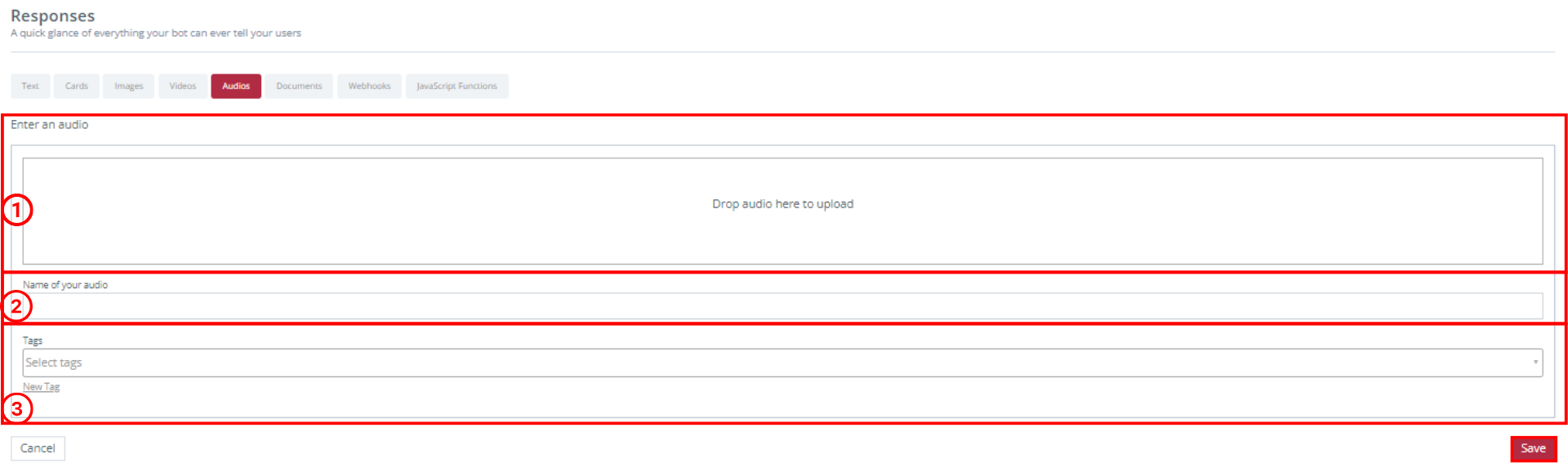 To set up video responses, navigate to **Responses** and select **Audio.**