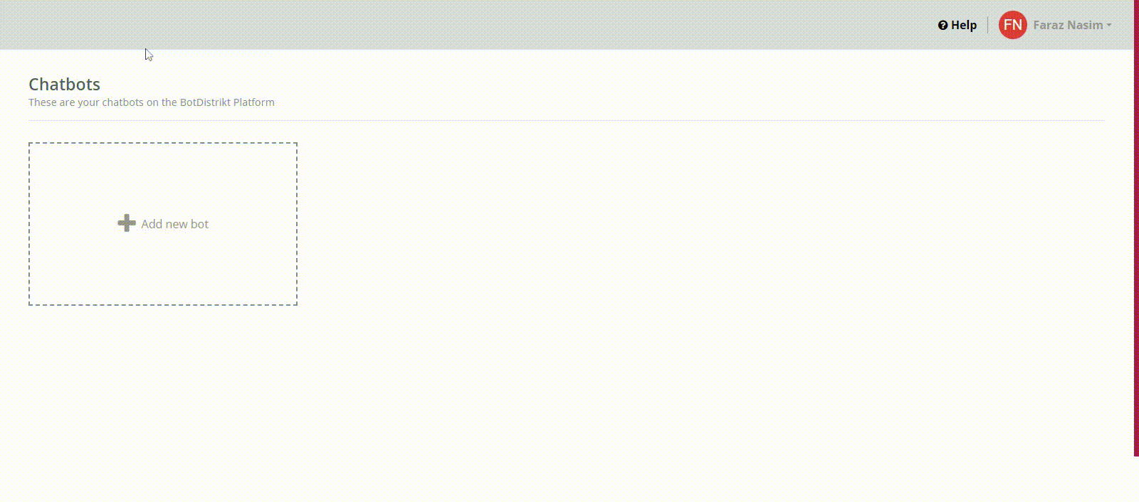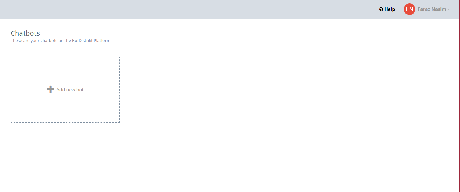1. Click on **Add New Bot.** You will be instantly redirected to the [new](https://flow.botdistrikt.com/new) dashboard.