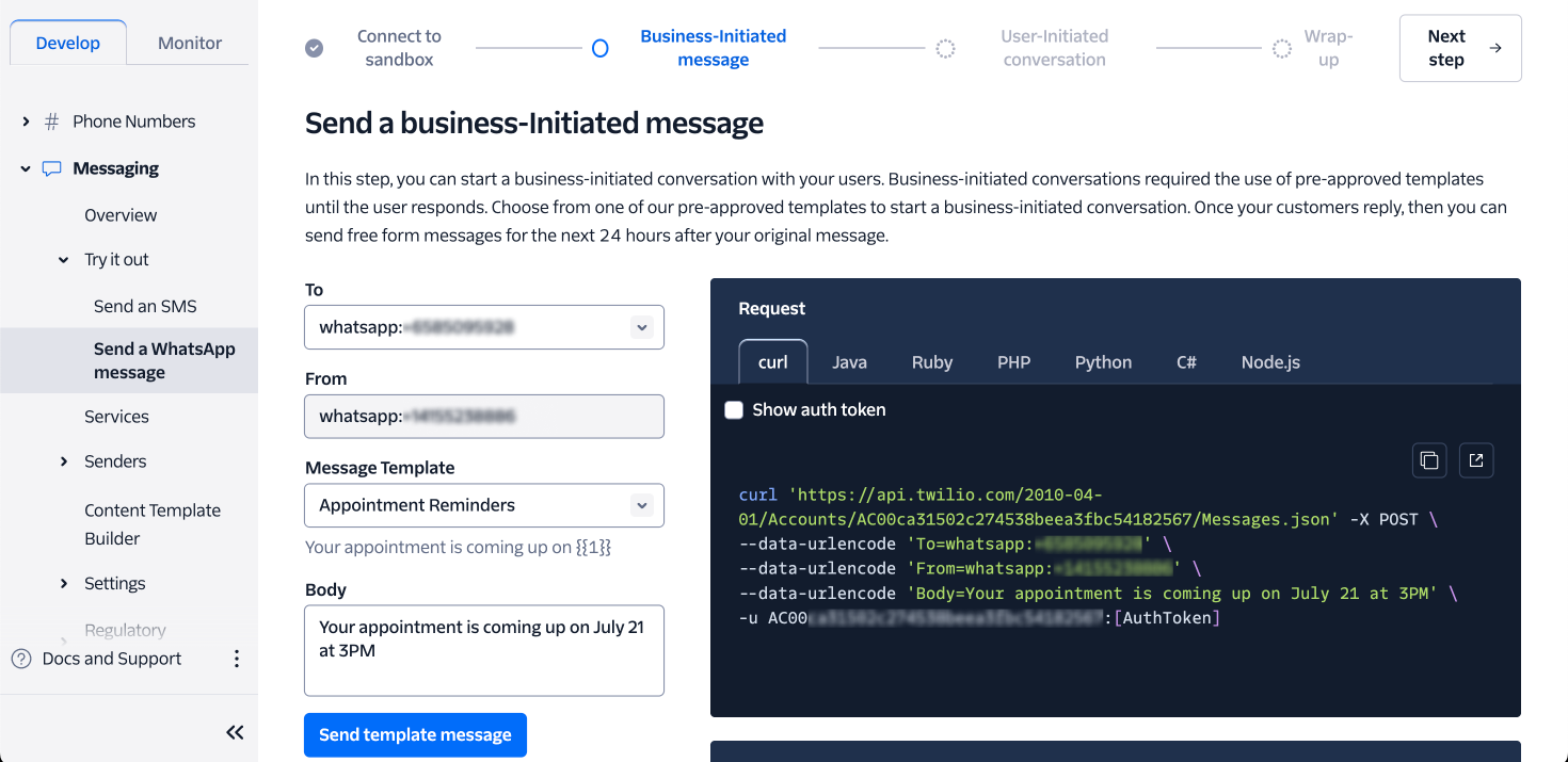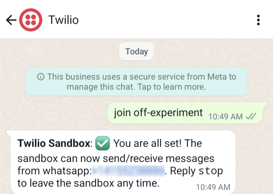 After you have successfully completed the above steps, return to the Twilio Messaging > Try WhatsApp. You will see this step.